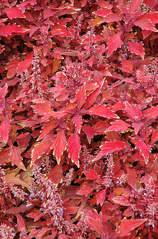 This variety produces velvety, red-orange leaves with a bronze cast; leaf color is dependent on amount of sunshine; great for gardens, containers and mixed borders