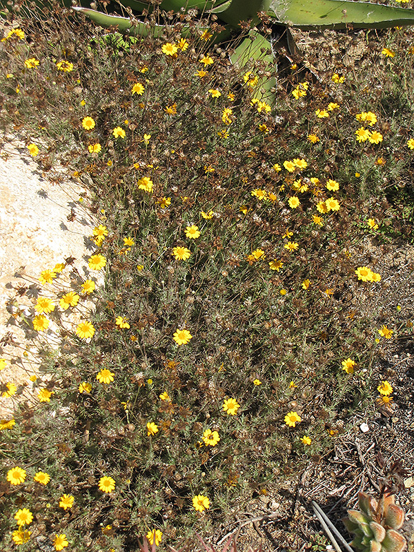 Golden Dyssodia will grow to be about 8 inches tall at maturity extending to 12 inches tall with the flowers, with a spread of 12 inches. When grown in masses or used as a bedding plant, individual plants should be spaced approximately 10 inches apart. Its foliage tends to remain low and dense right to the ground. Although it's not a true annual, this plant can be expected to behave as an annual in our climate if left outdoors over the winter, usually needing replacement the following year. As such, gardeners should take into consideration that it will perform differently than it would in its native habitat.