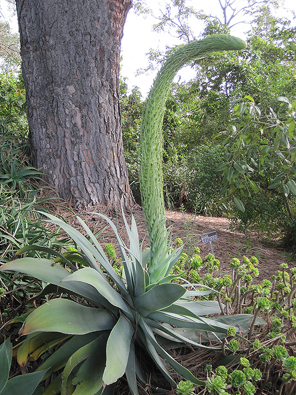 An appealing variety producing a rosette of wide, green-gray foliage on smooth gray stems that can reach 4 feet; infrequent flower stalks curve toward the ground, then arch back upward, resembling a fox's tail; a great accent planting