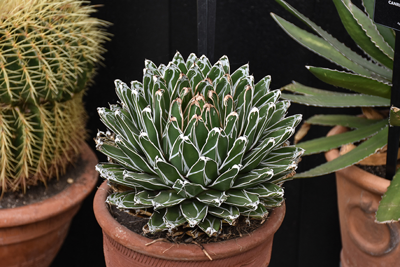 Queen Victoria Agave makes a fine choice for the outdoor landscape, but it is also well-suited for use in outdoor pots and containers. Because of its height, it is often used as a 'thriller' in the 'spiller-thriller-filler' container combination; plant it near the center of the pot, surrounded by smaller plants and those that spill over the edges. Note that when grown in a container, it may not perform exactly as indicated on the tag - this is to be expected. Also note that when growing plants in outdoor containers and baskets, they may require more frequent waterings than they would in the yard or garden. Be aware that in our climate, most plants cannot be expected to survive the winter if left in containers outdoors, and this plant is no exception. Contact our experts for more information on how to protect it over the winter months.