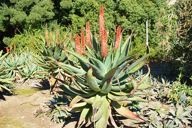 Cape Aloe features showy spikes of orange flowers with red overtones rising above the foliage from late winter to early spring. It has attractive bluish-green foliage edged in red. The succulent sword-like leaves are highly ornamental and remain bluish-green throughout the winter. The rough gray bark adds an interesting dimension to the landscape.