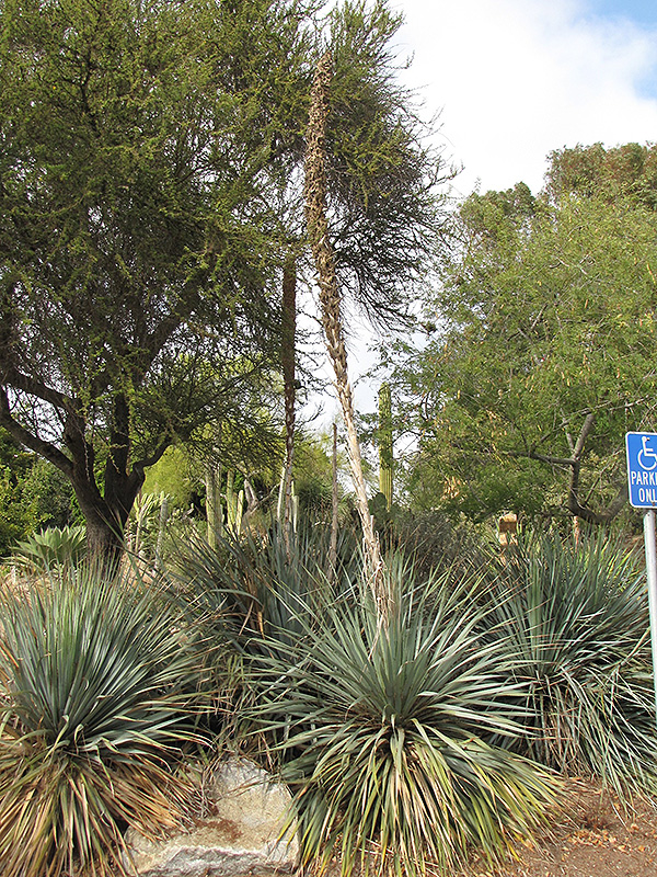 Hildago Sotol will grow to be about 4 feet tall at maturity extending to 15 feet tall with the flowers, with a spread of 4 feet. It tends to fill out right to the ground and therefore doesn't necessarily require facer plants in front. It grows at a slow rate, and under ideal conditions can be expected to live for 40 years or more.