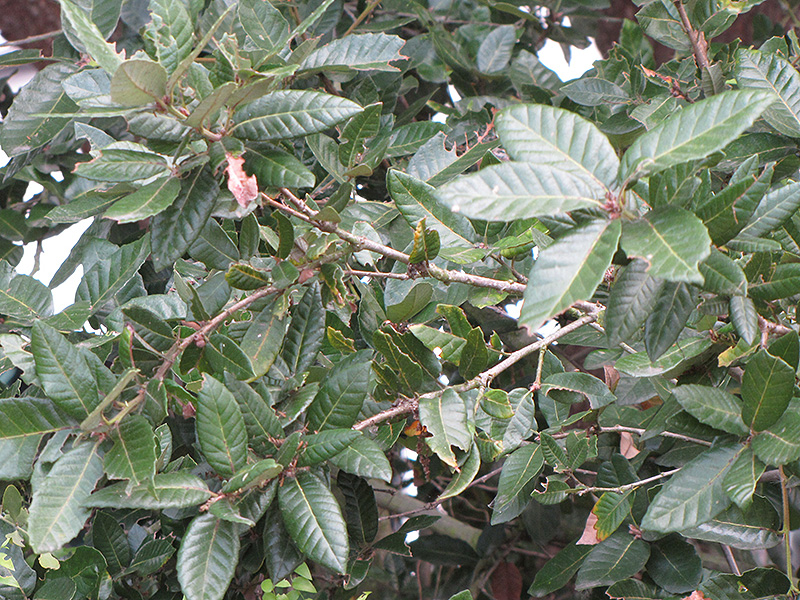Island Oak has attractive dark green foliage with bluish-green undersides on a tree with a pyramidal habit of growth. The glossy oval leaves are highly ornamental and remain dark green throughout the winter. However, the fruit can be messy in the landscape and may require occasional clean-up.