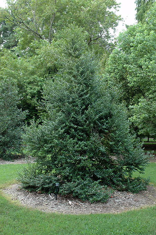 This beautiful holly has a dense, tidy, pyramidal habit that is excellent for screening; requires male pollinator to set fruit; splendid rich, green leaves and abundant red fruit in winter make this a great addition to the landscape