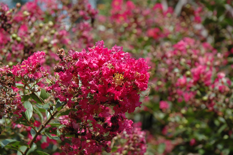 Baton Rouge Crapemyrtle is smothered in stunning panicles of red frilly flowers at the ends of the branches from early summer to early fall. It has attractive dark green deciduous foliage which emerges coppery-bronze in spring. The oval leaves are highly ornamental and turn harvest gold in fall.