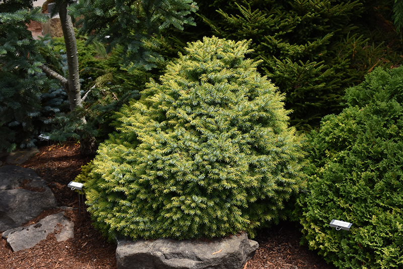 A small, dense mounded shrub, that forms a neat, compact evergreen ball; needles have a golden cast, especially in full sun; quite adaptable and an excellent choice for form and texture in the garden composition, justifiably popular