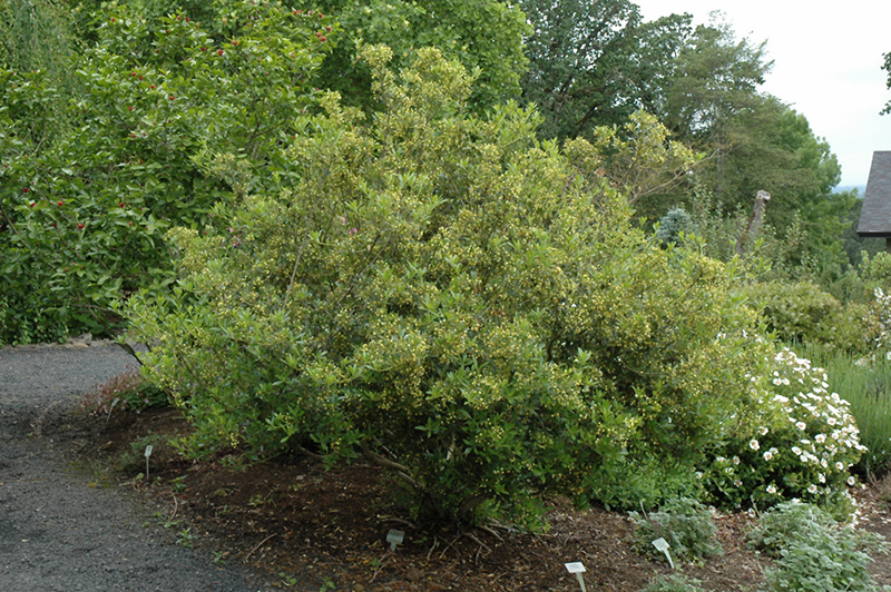 A beautiful green shub that may eventually reach ten feet high without pruning; emerging foliage is yellow-green, maturing to a deep, glossy green; fragrant, creamy flower clusters in spring; perfect for a hedge or screen