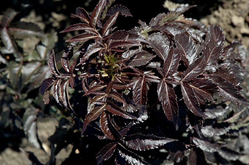 Licorice Stix Elder features showy clusters of fragrant shell pink flowers held atop the branches in early summer, which emerge from distinctive rose flower buds. It has attractive black deciduous foliage which emerges light green in spring. The serrated compound leaves are highly ornamental but do not develop any appreciable fall colour. The black fruits are held in clusters in early fall.