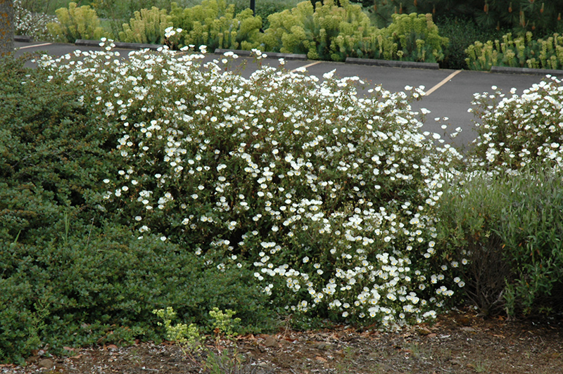 White Rockrose will grow to be about 4 feet tall at maturity, with a spread of 6 feet. It tends to fill out right to the ground and therefore doesn't necessarily require facer plants in front. It grows at a medium rate, and under ideal conditions can be expected to live for approximately 10 years.