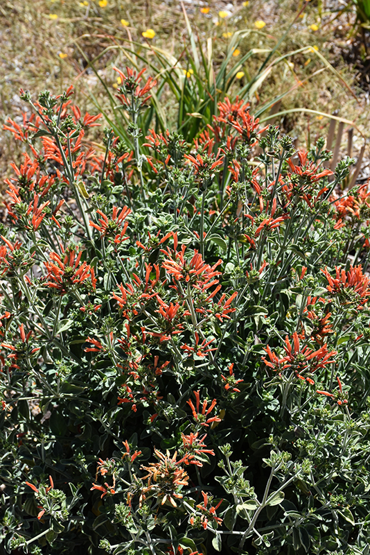 An attractive hummingbird magnet in the garden with clusters of long lasting coral-red blooms from mid summer into fall; highly tolerant to heat, humidity, and drought; beautiful blue-green fuzzy foliage is evergreen in frost free areas