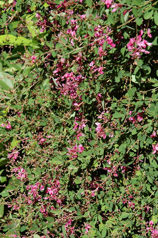 This attractive shrub is covered with deep pink pea-like flowers from summer to fall atop medium green foliage; a versatile plant for tough locations, may be grown as herbaceous perennial by cutting back to ground in early spring