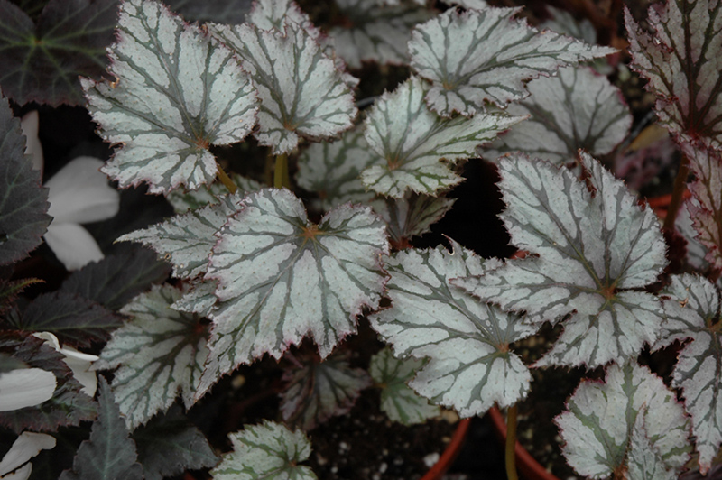 This large, mounded variety quickly creates a dense, full specimen; stunning silver leaves with dark gray-green veins and a plummy-red violet cast; grown primarily for foliage, pink flowers are subtle; perfect for window boxes and light shade gardens