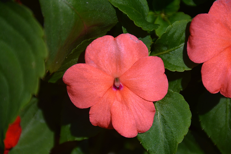 Lollipop Peach Salmon Impatiens will grow to be about 11 inches tall at maturity, with a spread of 14 inches. When grown in masses or used as a bedding plant, individual plants should be spaced approximately 12 inches apart. Its foliage tends to remain low and dense right to the ground. This fast-growing annual will normally live for one full growing season, needing replacement the following year.