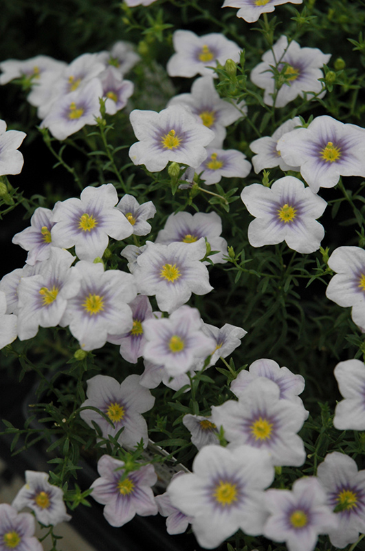 Blue Eyes Cupflower is a dense herbaceous annual with a trailing habit of growth, eventually spilling over the edges of hanging baskets and containers. It brings an extremely fine and delicate texture to the garden composition and should be used to full effect.