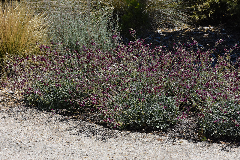 Long stalked, heart shaped velvety leaves are mildly aromatic; dainty clusters of deep red, nearly black flowers dot the plant all season; perfect for patio containers