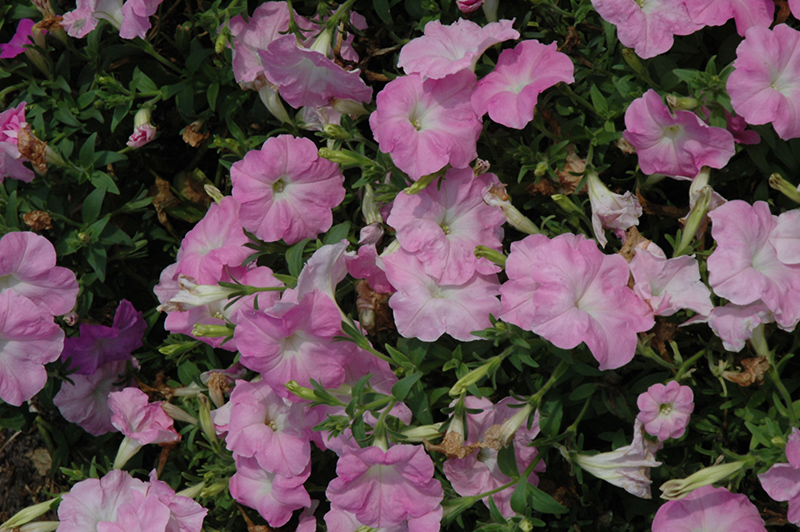 Madness Pink Chiffon Petunia will grow to be about 14 inches tall at maturity, with a spread of 12 inches. When grown in masses or used as a bedding plant, individual plants should be spaced approximately 10 inches apart. Its foliage tends to remain dense right to the ground, not requiring facer plants in front. This fast-growing annual will normally live for one full growing season, needing replacement the following year.