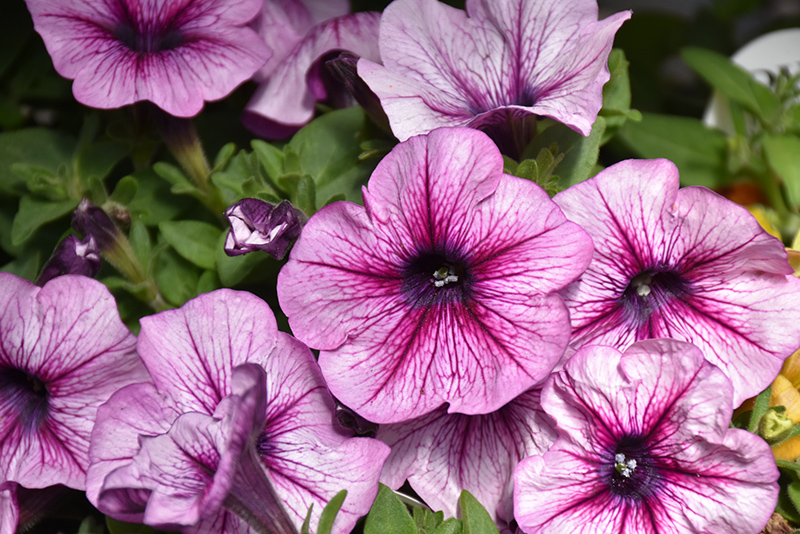 Starlet™ Lavender Star Petunia is blanketed in stunning lavender trumpet-shaped flowers with deep purple throats and dark red veins at the ends of the stems from mid spring to mid fall. Its pointy leaves remain green in colour throughout the season.
