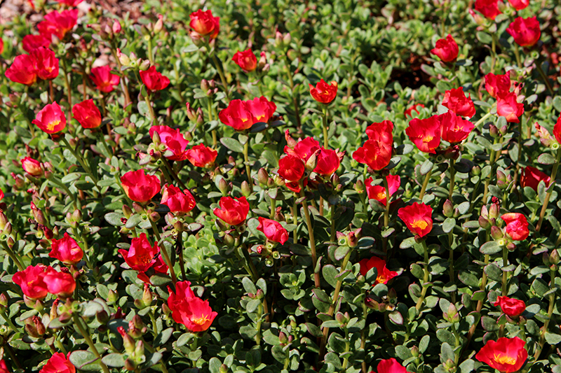 Mojave® Red Portulaca is an herbaceous annual with a ground-hugging habit of growth. It brings an extremely fine and delicate texture to the garden composition and should be used to full effect.