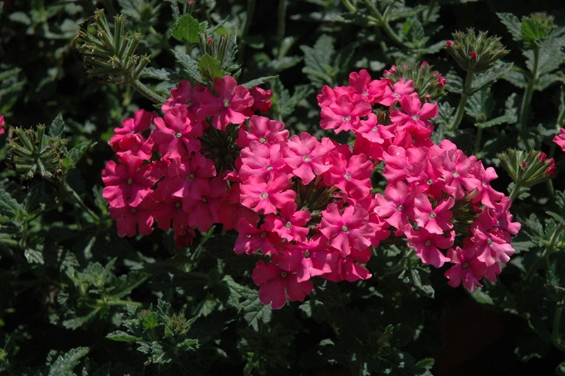 Vanessa™ Deep Pink Verbena features showy clusters of hot pink star-shaped flowers with rose overtones at the ends of the stems from late spring to mid fall. The flowers are excellent for cutting. Its small tomentose narrow leaves remain green in colour throughout the season.