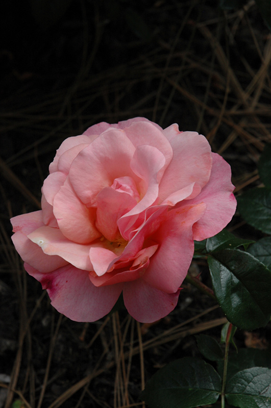 Bushy and spreading in form, this floribunda rose produces luminous apricot-pink double blooms, creating tremendous visual impact when massed in the garden; blooms repeat all season long; requires spring freeze protection