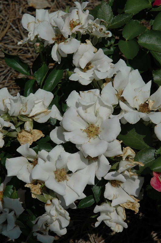 Look-A-Likes® Apple Dapple Rose is covered in stunning clusters of white flowers with shell pink overtones and gold eyes at the ends of the branches from mid spring to early fall. The flowers are excellent for cutting. It has dark green deciduous foliage. The glossy oval compound leaves do not develop any appreciable fall colour.