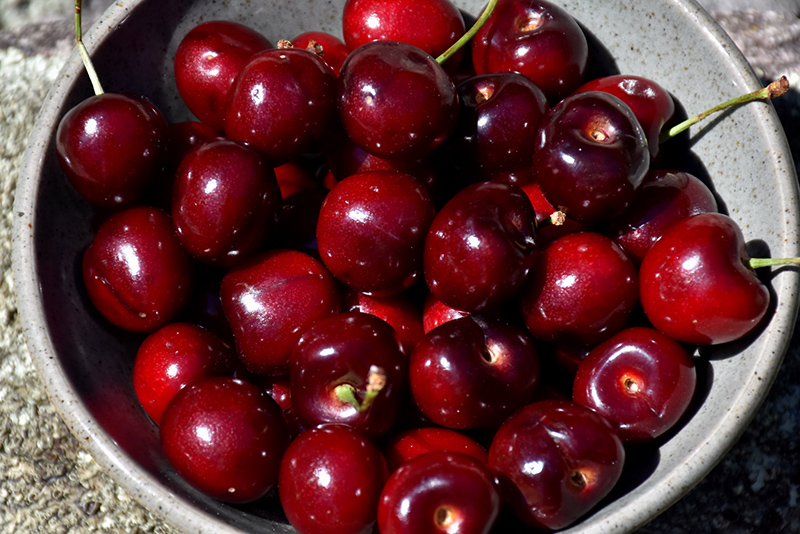 Royal Lee Cherry is a small tree that is commonly grown for its edible qualities. It produces dark red round fruit (technically 'drupes') with red flesh which are usually ready for picking in mid summer. Note that the fruits have hard inedible pits inside which must be removed before eating or processing. The fruits have a sweet taste and a firm texture.
