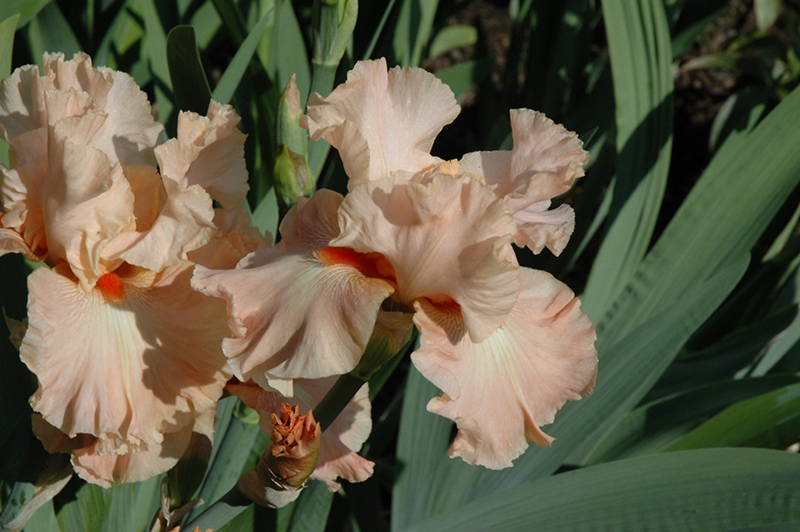This elegant iris presents peachy-apricot standards with peach streaked falls and vivid orange beards; a stunning addition to the perennial border; also excellent massed in groupings in the garden; will quickly form dense colonies