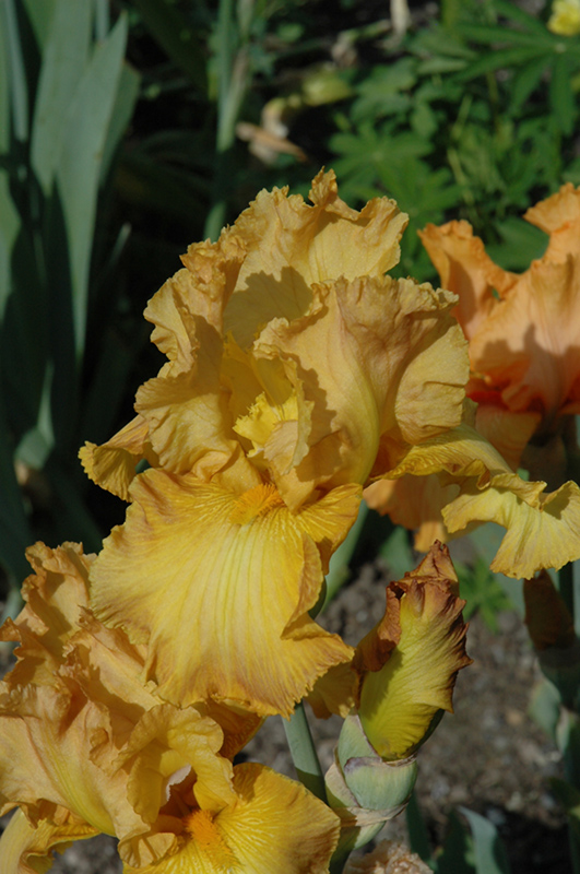 This elegant iris produces ruffled orange-yellow blooms with deep red-orange beards; a stunning addition to the perennial border; also excellent massed in groupings in the garden; will quickly form dense colonies