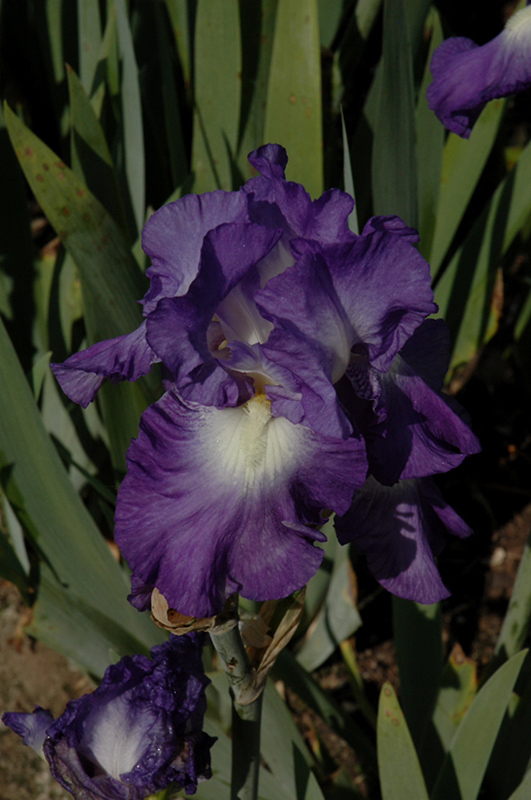 This elegant iris presents electric blue-violet blooms with contrasting white centers and yellow beards; a stunning addition to the perennial border; also excellent massed in groupings in the garden; will quickly form dense colonies