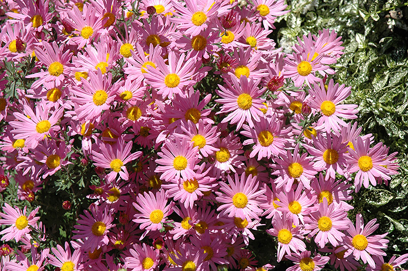 Fanfare Mix Chrysanthemum is smothered in stunning pink daisy flowers with yellow eyes at the ends of the stems from early to late fall. The flowers are excellent for cutting. Its fragrant ferny leaves remain green in colour throughout the season.