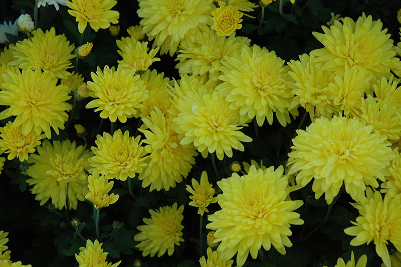 Lantern Glow Chrysanthemum is smothered in stunning double lemon yellow daisy flowers at the ends of the stems from early to late fall. The flowers are excellent for cutting. Its fragrant ferny leaves remain green in colour throughout the season.