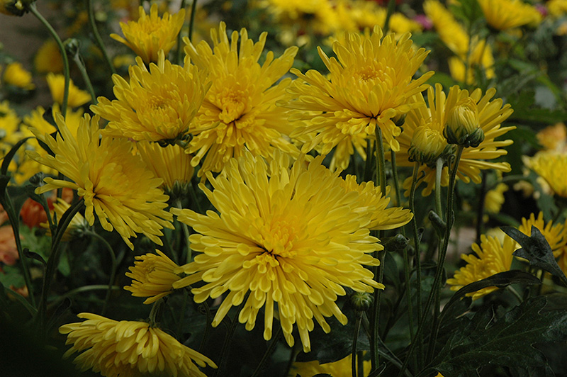 Beautiful bright yellow double blooms stand out in fall garden displays and containers; upright plants with green fragrant foliage bloom from early to late fall; cheery selection for fresh-cut flower arrangements; low maintenance and easy to grow