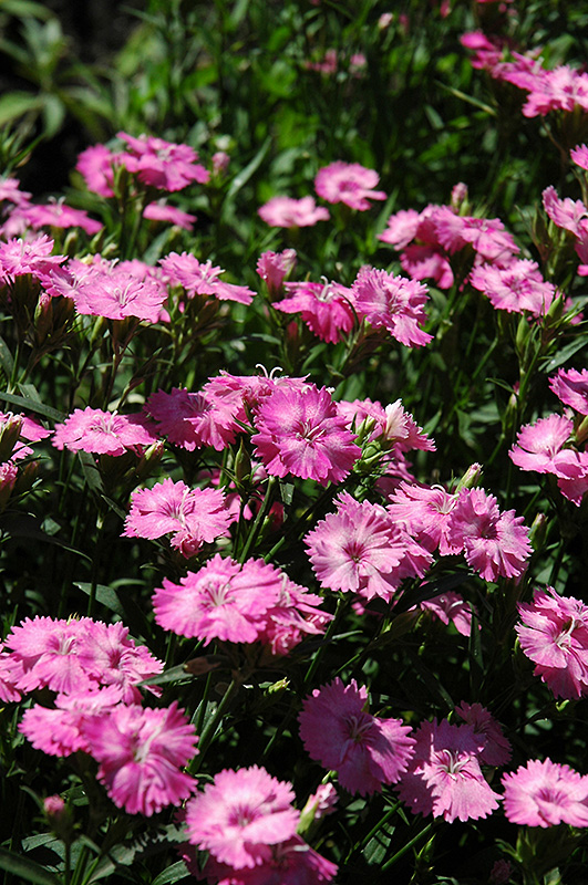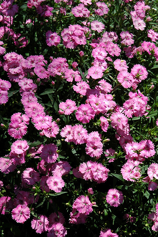 Blue Hills Pinks will grow to be only 4 inches tall at maturity extending to 6 inches tall with the flowers, with a spread of 12 inches. When grown in masses or used as a bedding plant, individual plants should be spaced approximately 8 inches apart. Its foliage tends to remain low and dense right to the ground. It grows at a medium rate, and under ideal conditions can be expected to live for approximately 10 years. As an evegreen perennial, this plant will typically keep its form and foliage year-round.