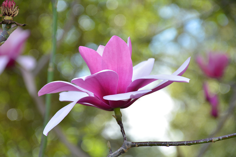 Dawson's Magnolia is clothed in stunning fragrant hot pink cup-shaped flowers with creamy white overtones at the ends of the branches in early spring before the leaves. It has dark green deciduous foliage. The large oval leaves turn yellow in fall. The fruits are showy pink pods displayed from early to mid fall.