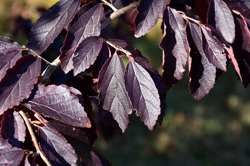 Chinese Parrotia has forest green deciduous foliage which emerges burgundy in spring on a tree with an oval habit of growth. The serrated oval leaves turn outstanding shades of deep purple, burgundy and red in the fall. The peeling gray bark and green branches are extremely showy and add significant winter interest.