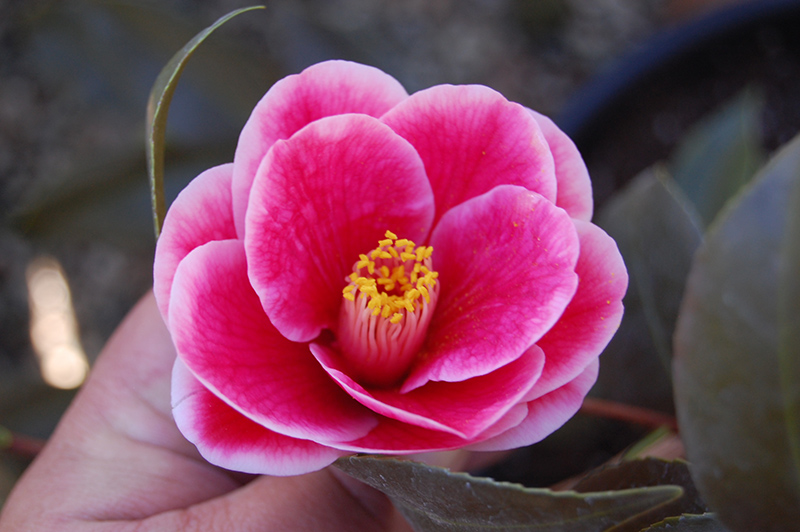 This long-blooming and well branched shrub is covered with stunning violet-red blooms with white edges in winter; flowers are great for cutting; has attractive, lustrous, dark, evergreen foliage; provide rich, acidic, moist, well-drained soil