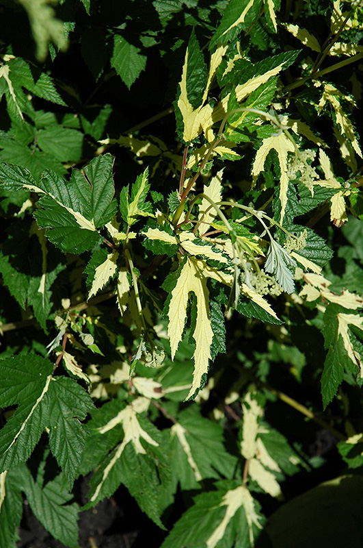 A well branched, upright bushy variety that features beautiful deep green serrated foliage with creamy white variegation, topped with fragrant white flower clusters; excellent for garden beds, and pondside gardens; good cut flower