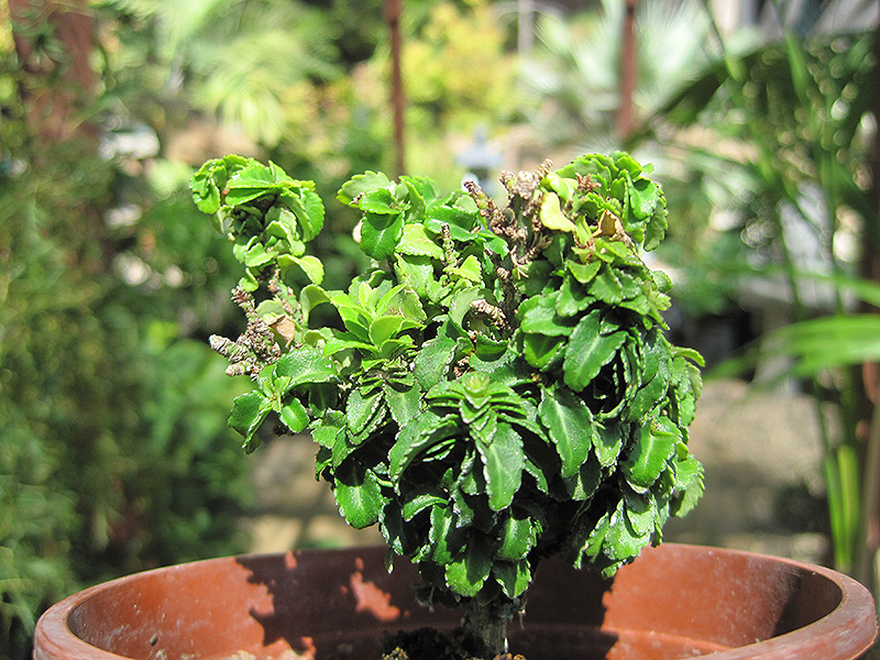 A miniature variety featuring tiny, dark-green foliage with some slight, white variegation; a great low plant with dense branches that tolerate shearing for a formal appearance, or leave to its natural shape
