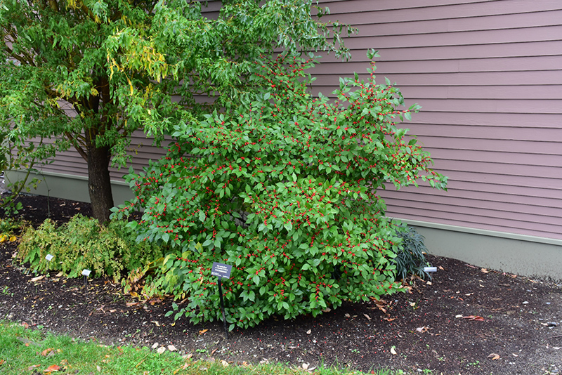 A showy fall shrub known for its brilliant scarlet red fruit; sheds leaves in fall to reveal berries; spreads to form colonies; Rhett Butler is recommended as pollinator, great in masses and particularly wet sites, needs acidic soil