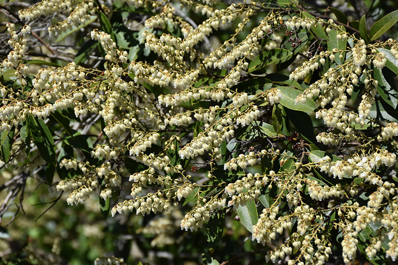 A native, broadleaf evergreen shrub prized for its very delicate and showy chains of small creamy white urn-shaped flowers; performs best in moist, organic and acidic soils