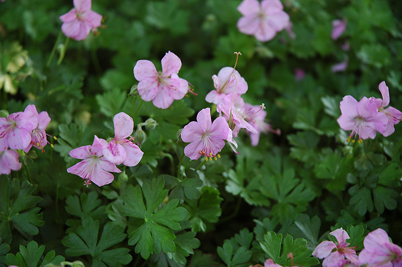 Dalmatian Cranesbill will grow to be only 6 inches tall at maturity, with a spread of 18 inches. When grown in masses or used as a bedding plant, individual plants should be spaced approximately 14 inches apart. Its foliage tends to remain low and dense right to the ground. It grows at a medium rate, and under ideal conditions can be expected to live for approximately 10 years. As an herbaceous perennial, this plant will usually die back to the crown each winter, and will regrow from the base each spring. Be careful not to disturb the crown in late winter when it may not be readily seen!