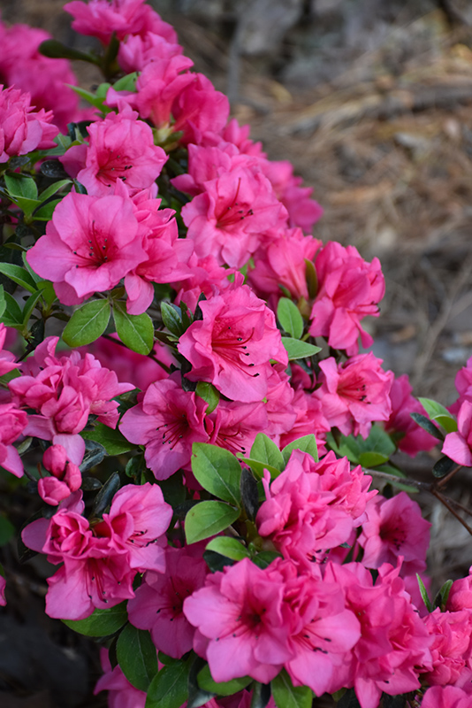 An outstanding azalea, smothered in frilly rose-pink flowers in spring; upright, mounded habit; absolutely must have well-drained, highly acidic and organic soil, use plenty of peat moss when planting