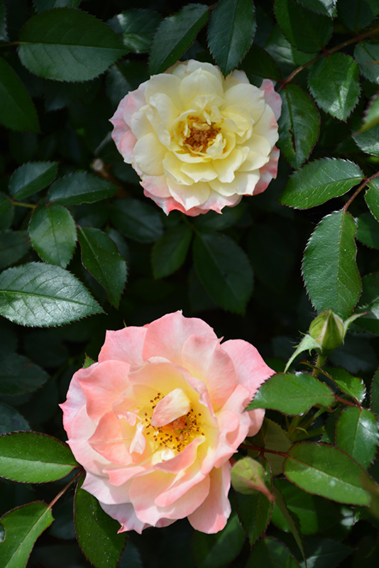 An outstanding, long-blooming rose with abundant flowers ranging from pink, yellow, to cream; a low mounding habit makes it perfect for massing along borders; highly disease resistant; all roses need full sun and well-drained soil
