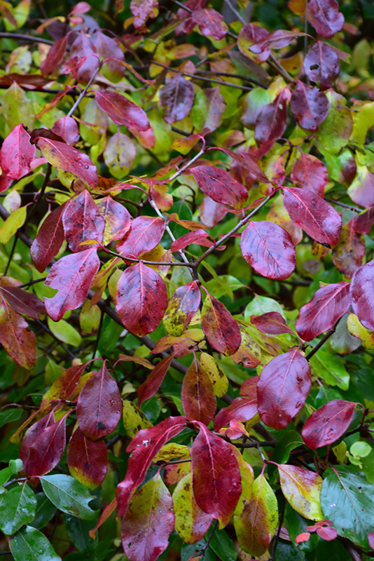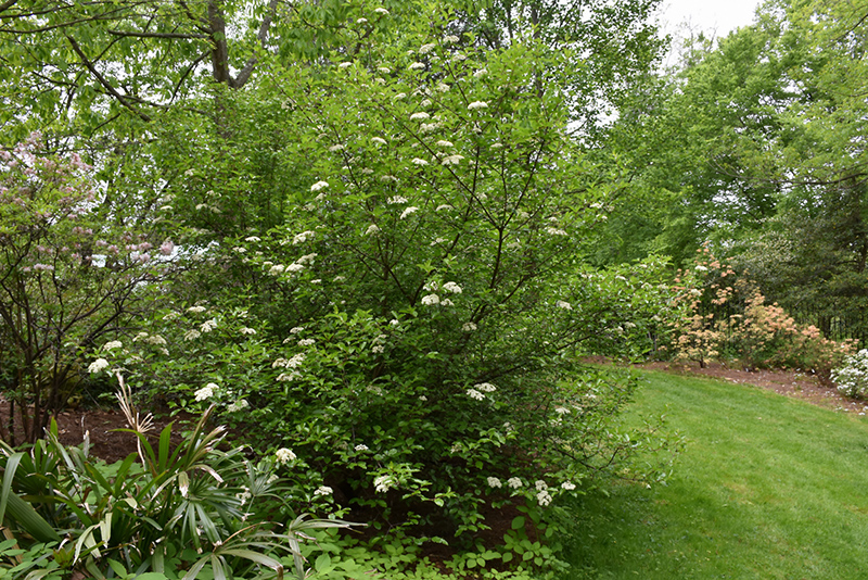 A large multipurpose shrub covered in creamy white flower clusters in spring followed by dark blue-purple berries, fall color ranges from purple to red; excellent as a large hedge or screen, also makes a nice accent plant, flaking older bark is attractive