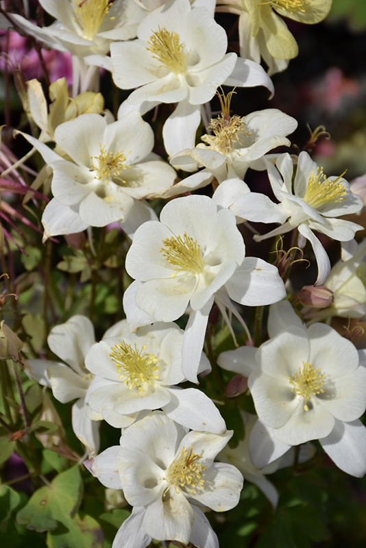 Origami White Columbine will grow to be about 12 inches tall at maturity extending to 16 inches tall with the flowers, with a spread of 12 inches. Its foliage tends to remain dense right to the ground, not requiring facer plants in front. It grows at a medium rate, and under ideal conditions can be expected to live for approximately 5 years. As an herbaceous perennial, this plant will usually die back to the crown each winter, and will regrow from the base each spring. Be careful not to disturb the crown in late winter when it may not be readily seen!