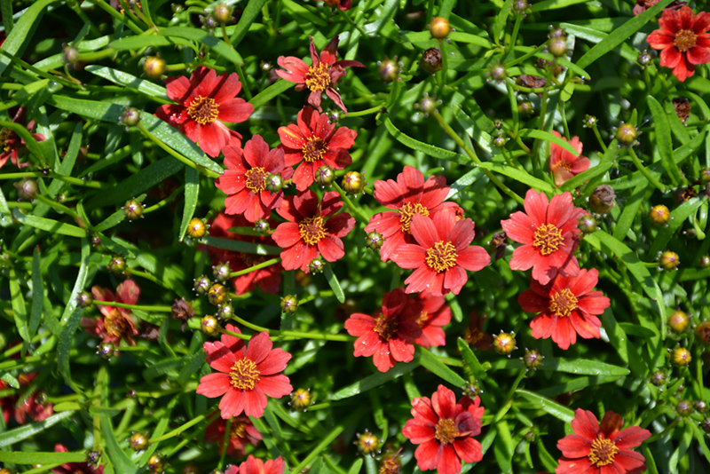 Twinklebells® Red Tickseed will grow to be about 12 inches tall at maturity, with a spread of 8 inches. Its foliage tends to remain dense right to the ground, not requiring facer plants in front. It grows at a medium rate, and under ideal conditions can be expected to live for approximately 10 years. As an herbaceous perennial, this plant will usually die back to the crown each winter, and will regrow from the base each spring. Be careful not to disturb the crown in late winter when it may not be readily seen!