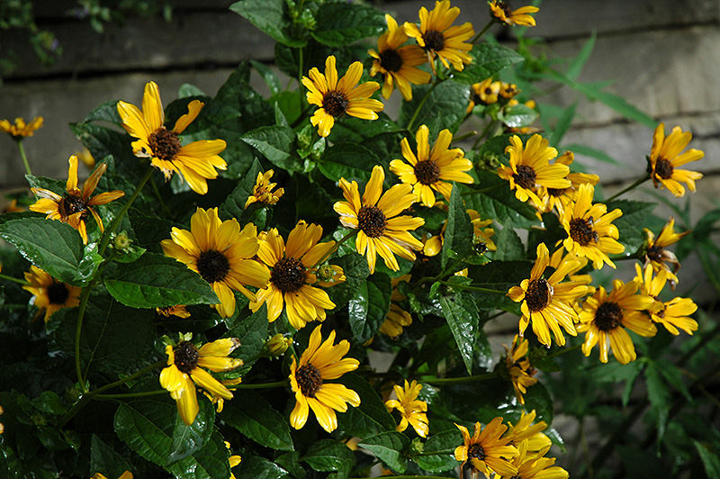 Golden yellow flowers with chocolate brown colored eyes sit atop strong, sturdy stems that rise above tall, lush mounds of dark green, toothy foliage; excellent in beds, borders, containers and cutting gardens; deadhead to encourage new growth