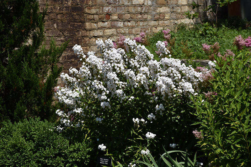 Flower Power Meadow Phlox features bold fragrant conical white star-shaped flowers with shell pink overtones and gold eyes at the ends of the stems from early to late summer. Its glossy grassy leaves remain dark green in colour throughout the season.