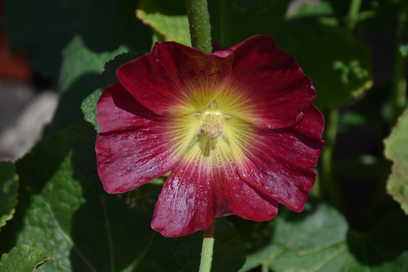 Halo Red Hollyhock is an herbaceous biennial with a rigidly upright and towering form. Its relatively coarse texture can be used to stand it apart from other garden plants with finer foliage.