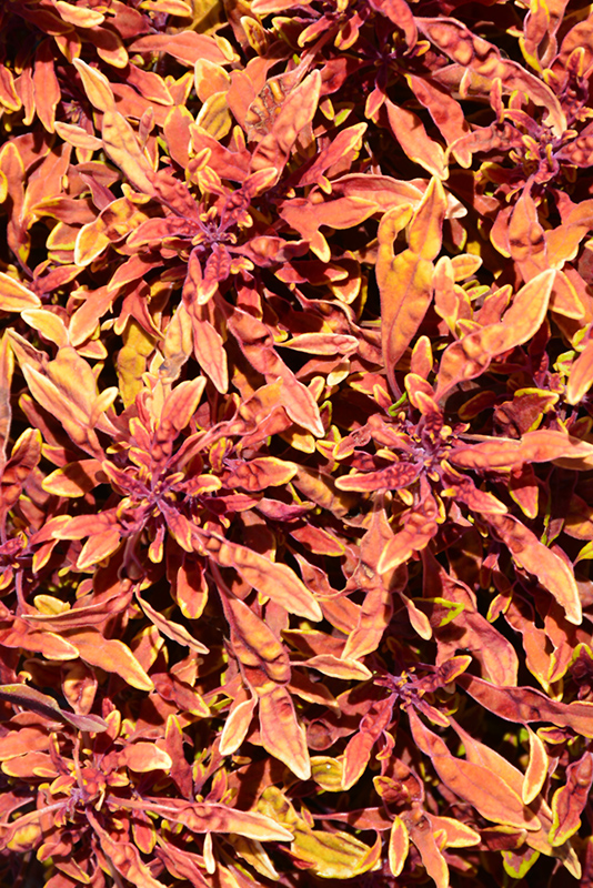 Hipsters™ Jasper Coleus' attractive crinkled narrow leaves remain brick red in colour with distinctive lime green edges and tinges of yellow throughout the year on a plant with a mounded habit of growth.